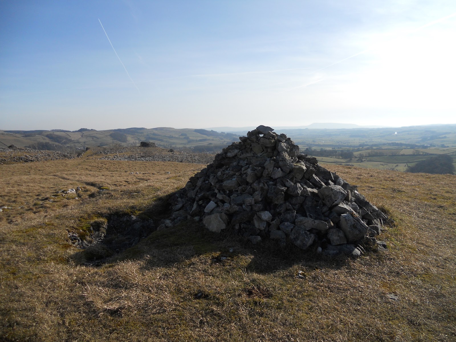 Our walk back along the line of Giggleswick Scar brought more fine views this time down the Ribble valley towards Pendle Hill and took us round the top of the now defunct quarry and back into the village past the golf course.
